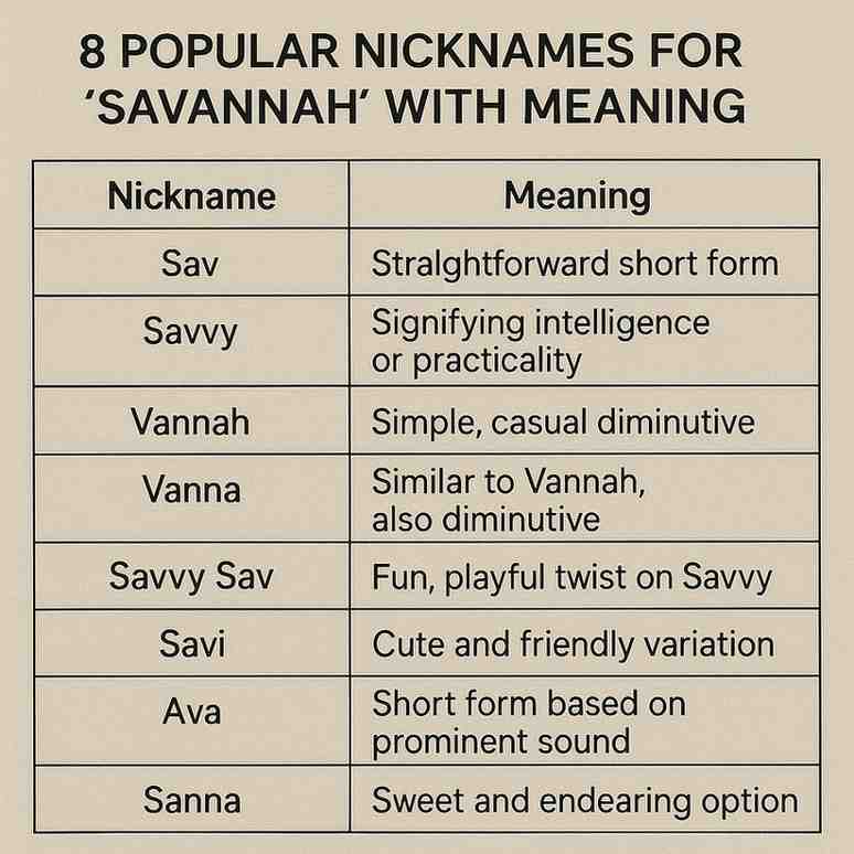Savannah is beautiful on its own, but it also comes with lots of fun nickname options. These short forms make the name feel more personal. Whether you’re going for cute, classy, or bold, there’s a nickname that fits.